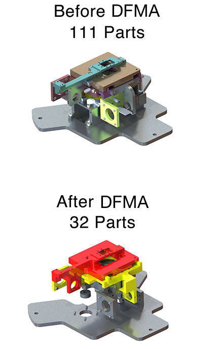 At Scitus, we have executed DFMA programs for our customers resulting in significant reductions in overall cost of production. The efficiencies found through DFMA can reduce part count, complexity, and assembly steps. These methods also optimize designs for specific manufacturing processes.